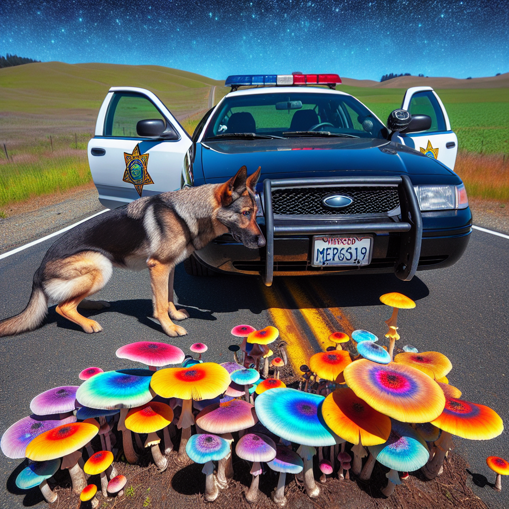 Podczas rutynowej kontroli drogowej policja zatrzymała pojazd, w którym po przeszukaniu przez wyszkolonego czworonoga, znaleziono aż 29 funtów grzybów psylocybinowych. Te rosnące naturalnie grzyby zawierają substancję psychodeliczną znaną jako psylocybina, która może powodować efekty halucynogenne. W stanie Kalifornia posiadanie i transport tych grzybów są nielegalne, co sprawiło, że ta sprawa przyciągnęła znaczną uwagę organów ścigania.