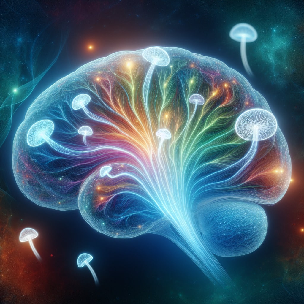 - Zwiększenie komunikacji między regionami mózgu: Psilocybin zmniejsza barierę komunikacyjną między różnymi obszarami mózgu, co pozwala na lepszą integrację informacji.